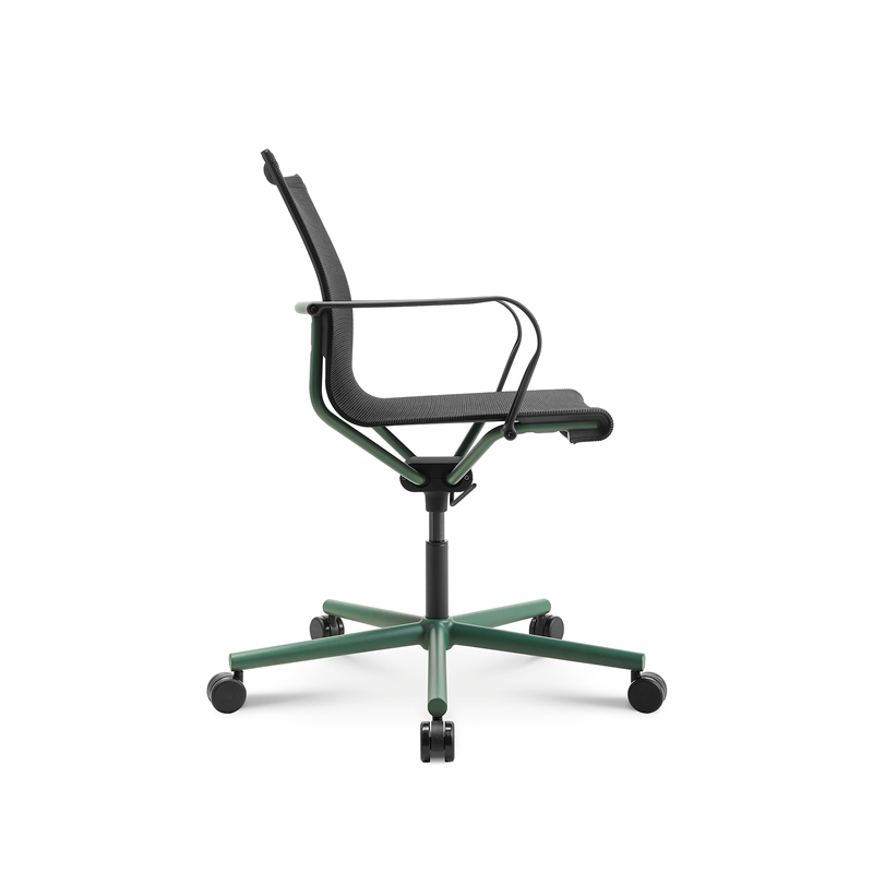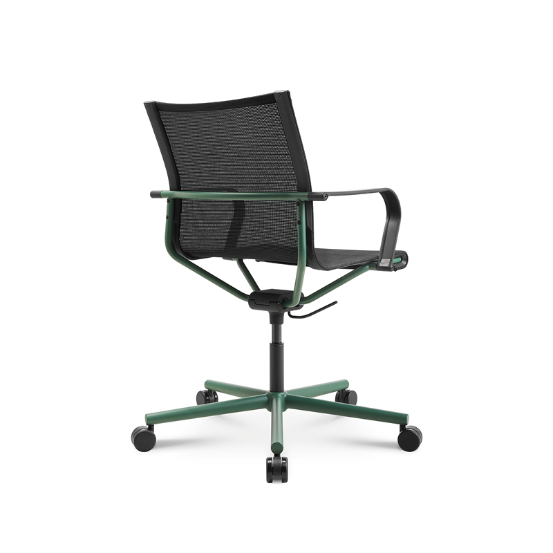 Die dreidimensionale Bewegung des Stuhloberteils wird durch die Beweglichkeit des Öffnungswinkels von Sitz und Lehne ergänzt und bringt sie in die 4. Dimension. Eine revolutionäre Mechanik, die besonders sanft und absolut geräuschlos abläuft.